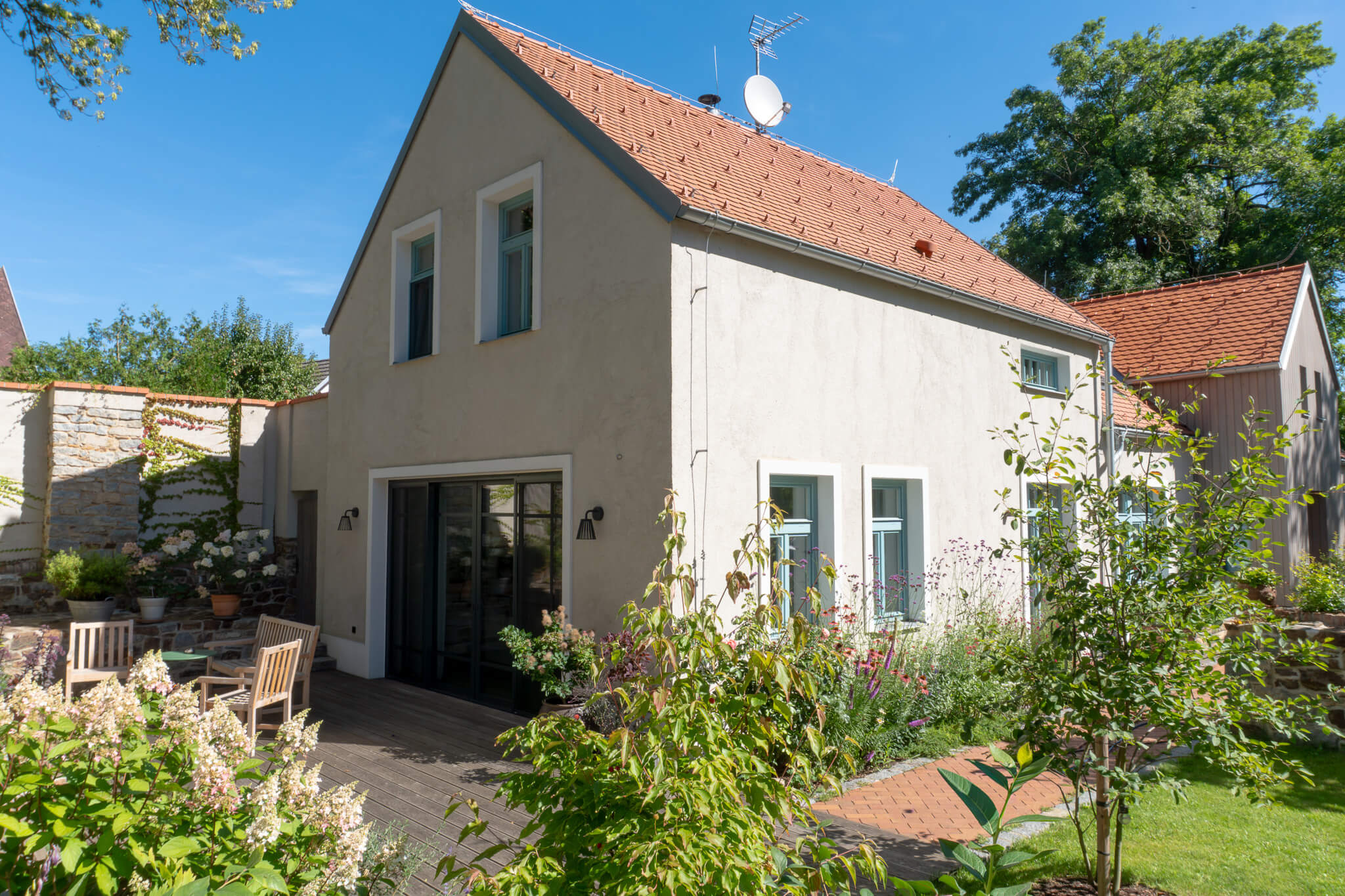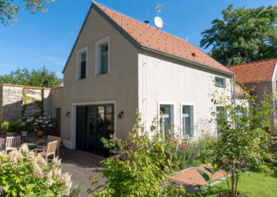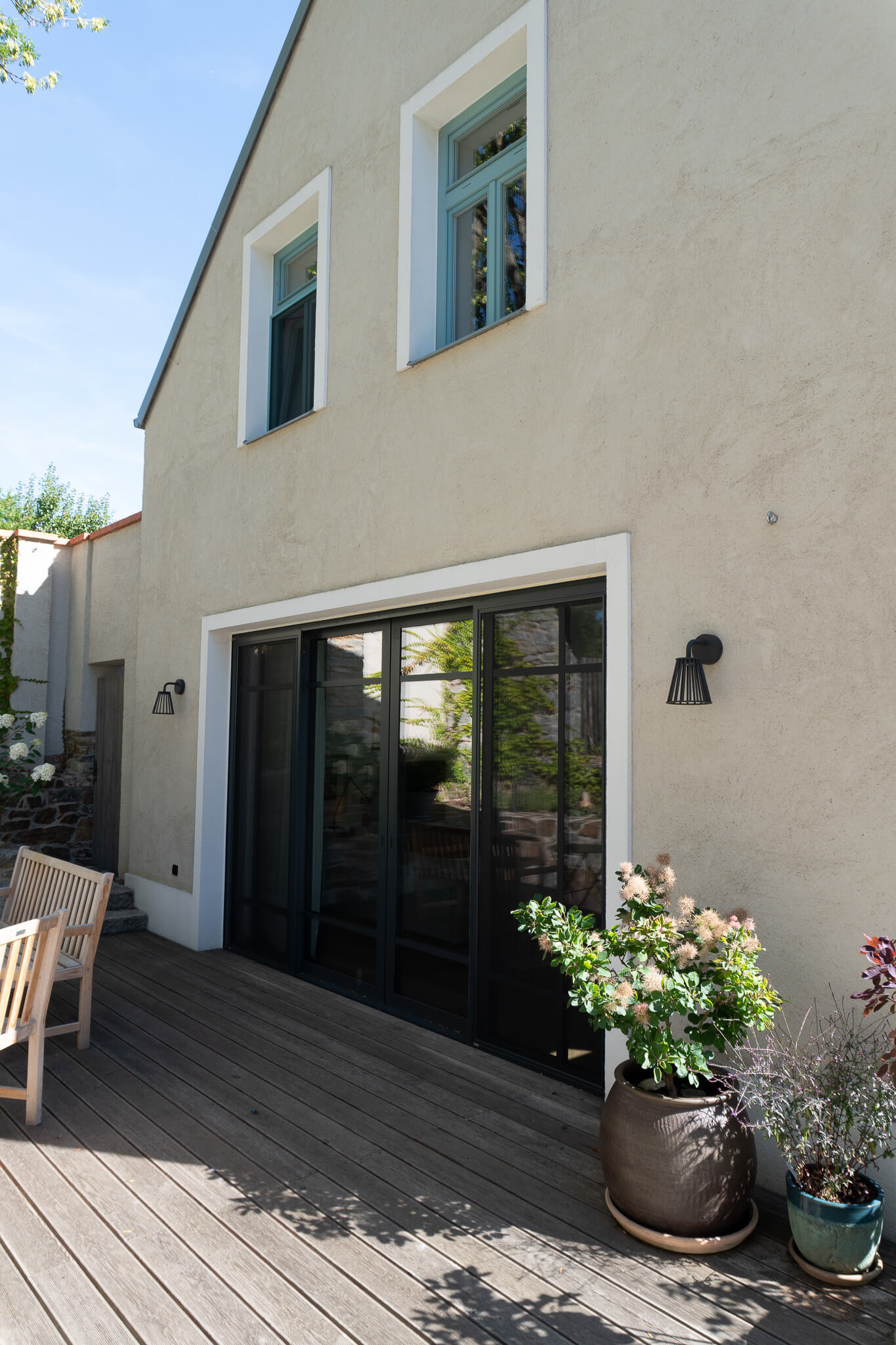 Součástí zakázky byl také hliníkový posuvný portál, který propojuje interiér se zahradou a přináší do obytných prostor maximum přirozeného světla. Kombinace dřevěných prvků a hliníkového portálu vytváří harmonické a funkční řešení, které splňuje vysoké nároky na komfort i estetiku moderního bydlení.