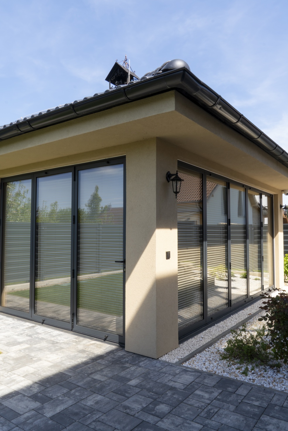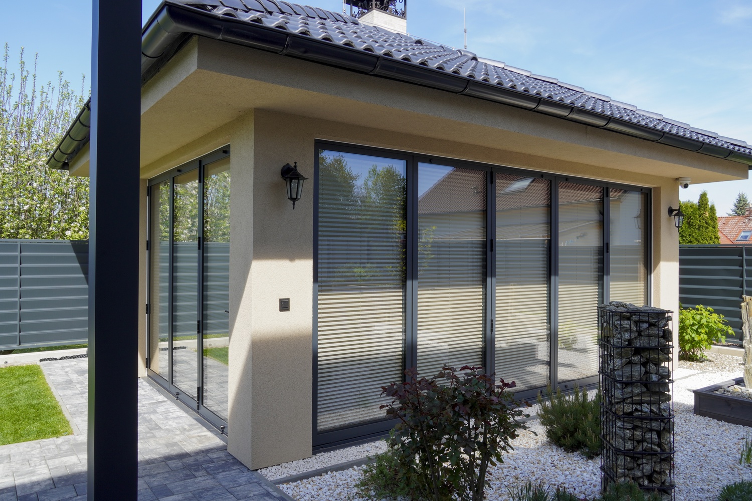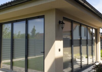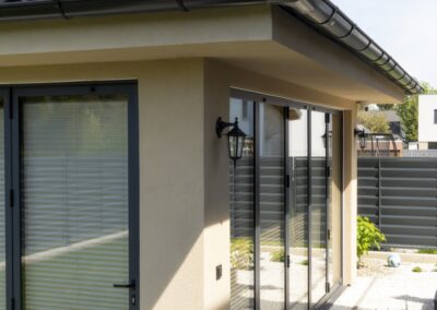 V rodinném domě v Praze jsme realizovali montáž hliníkových skládacích dveří Harmonica 88, které byly osazeny v prostoru altánu, sloužícího jako letní kuchyně. Tento systém umožňuje pohodlné a široké otevření směrem do zahrady, čímž propojuje venkovní a vnitřní část posezení. Hliníkové provedení zajišťuje odolnost vůči počasí a dlouhou životnost bez náročné údržby.
