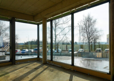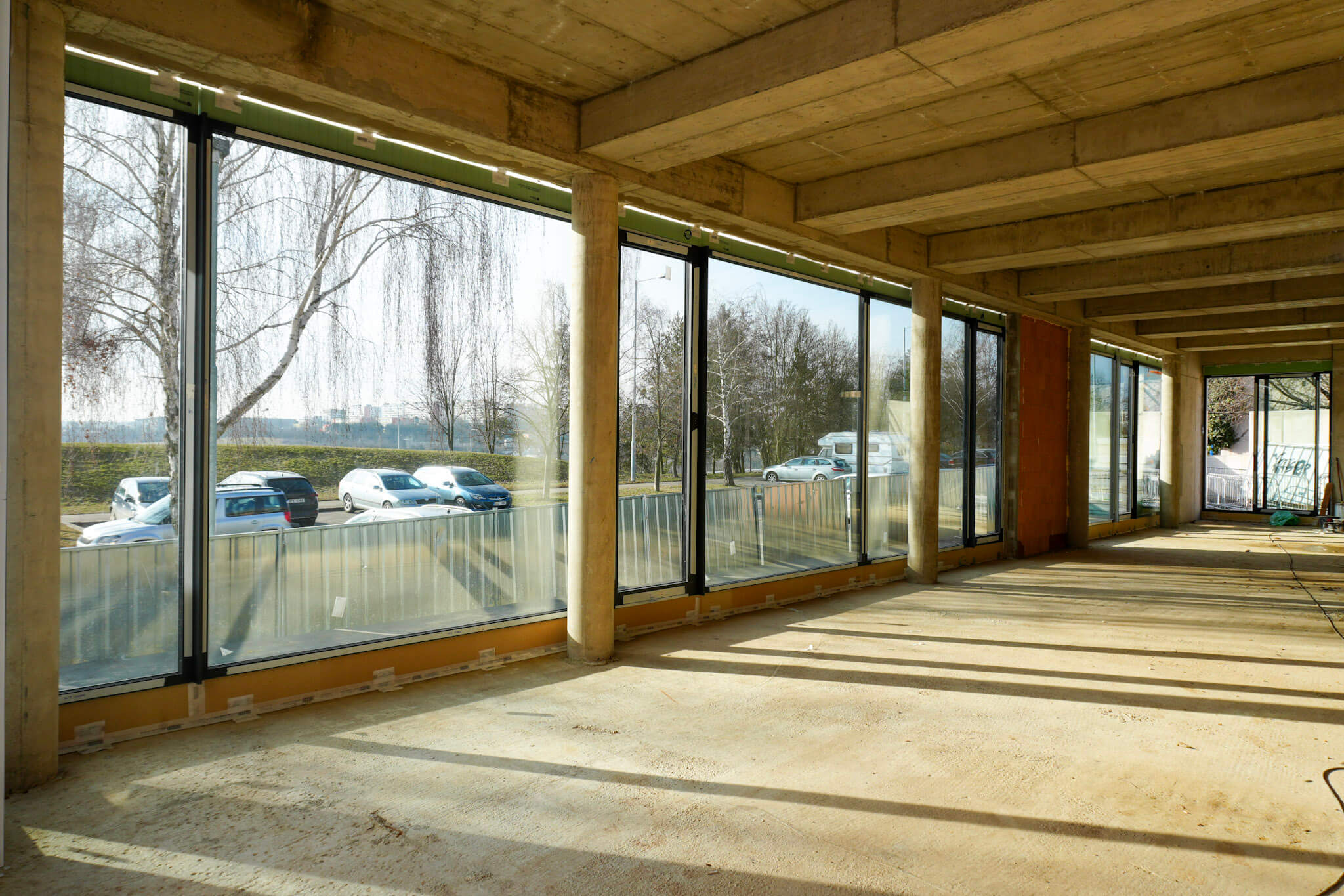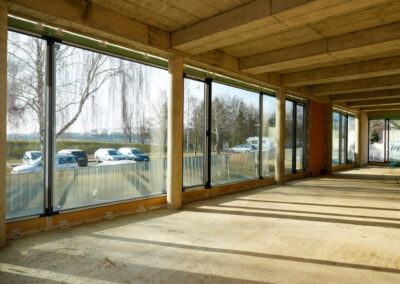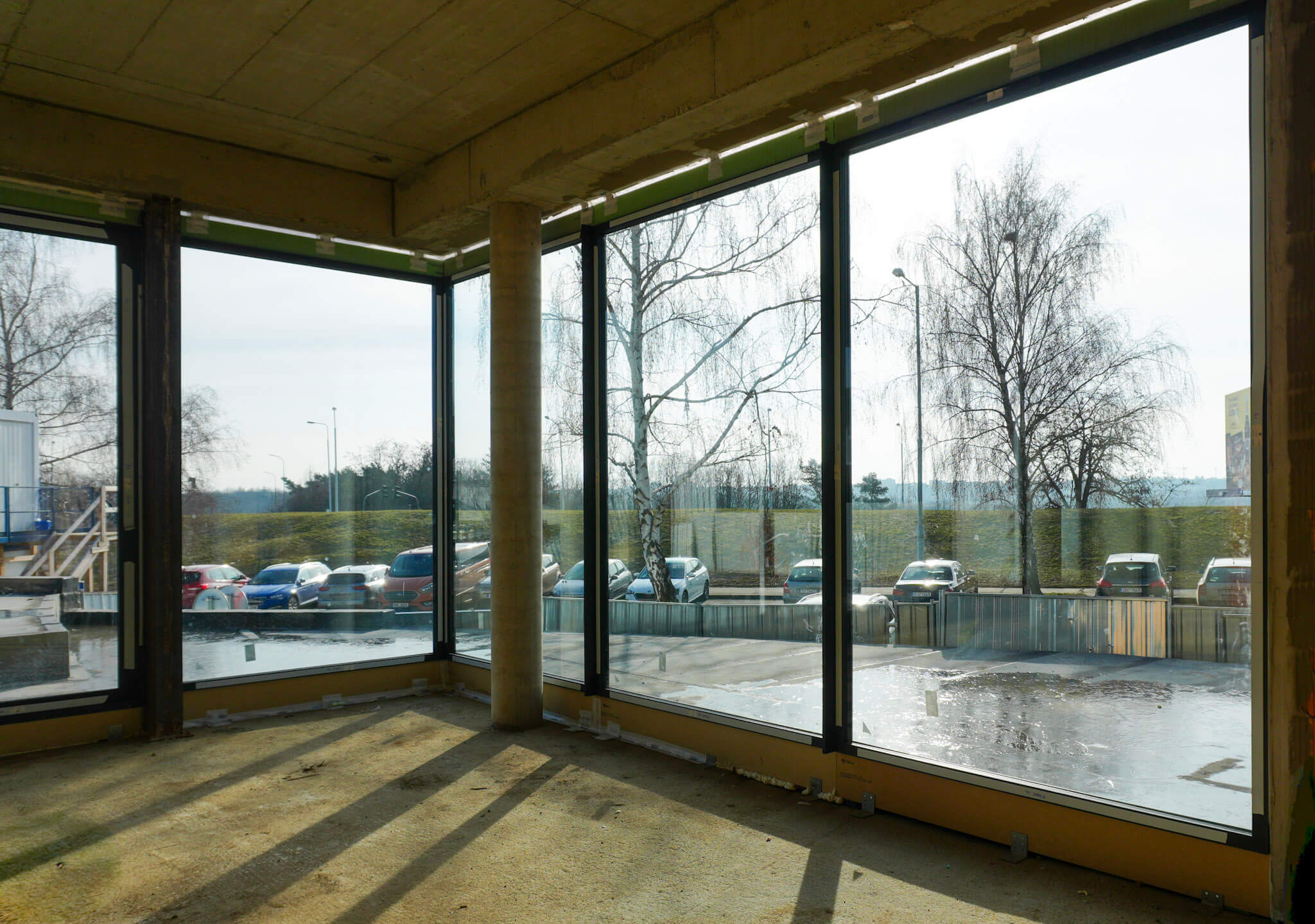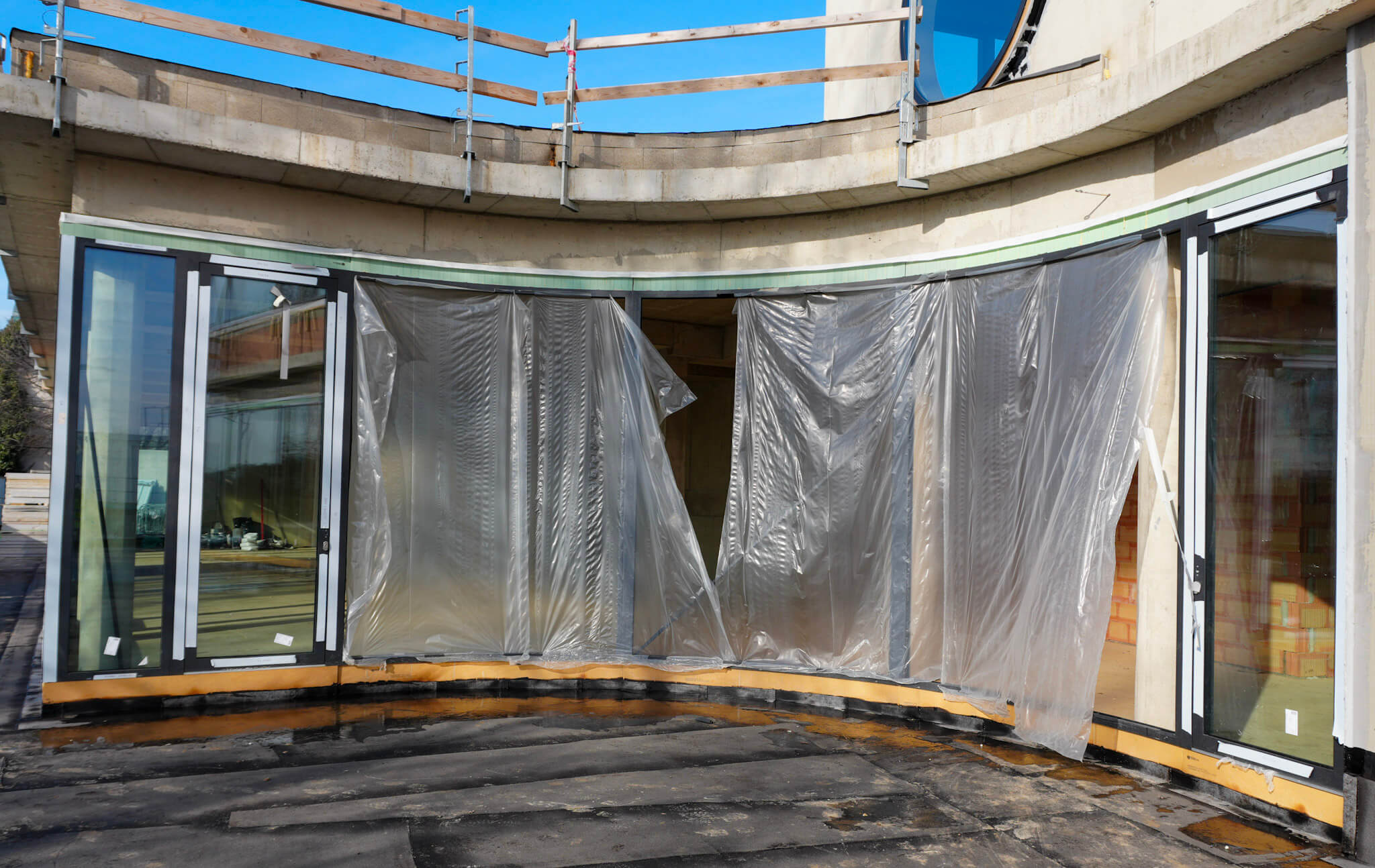 Absolutní dominantou celé stavby se stala 11 metrů dlouhá oblouková sestava oken a dveří. Realizace takto rozměrného prosklení v oblouku vyžaduje extrémní preciznost již ve fázi zaměření a výroby, aby byla zajištěna stoprocentní statika a plynulý chod všech otevíravých prvků. Pro tento projekt jsme zvolili kombinaci profilů: