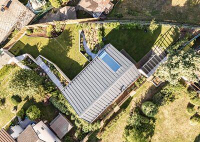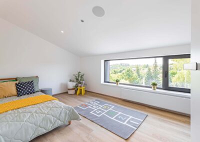 Tato realizace v malebném prostředí Kostelce u Křížků využívá předností moderních hliníkových profilů z našeho portfolia Deceuninck, které umožňují práci s velkými formáty skla při zachování štíhlých linií a vysoké stability.