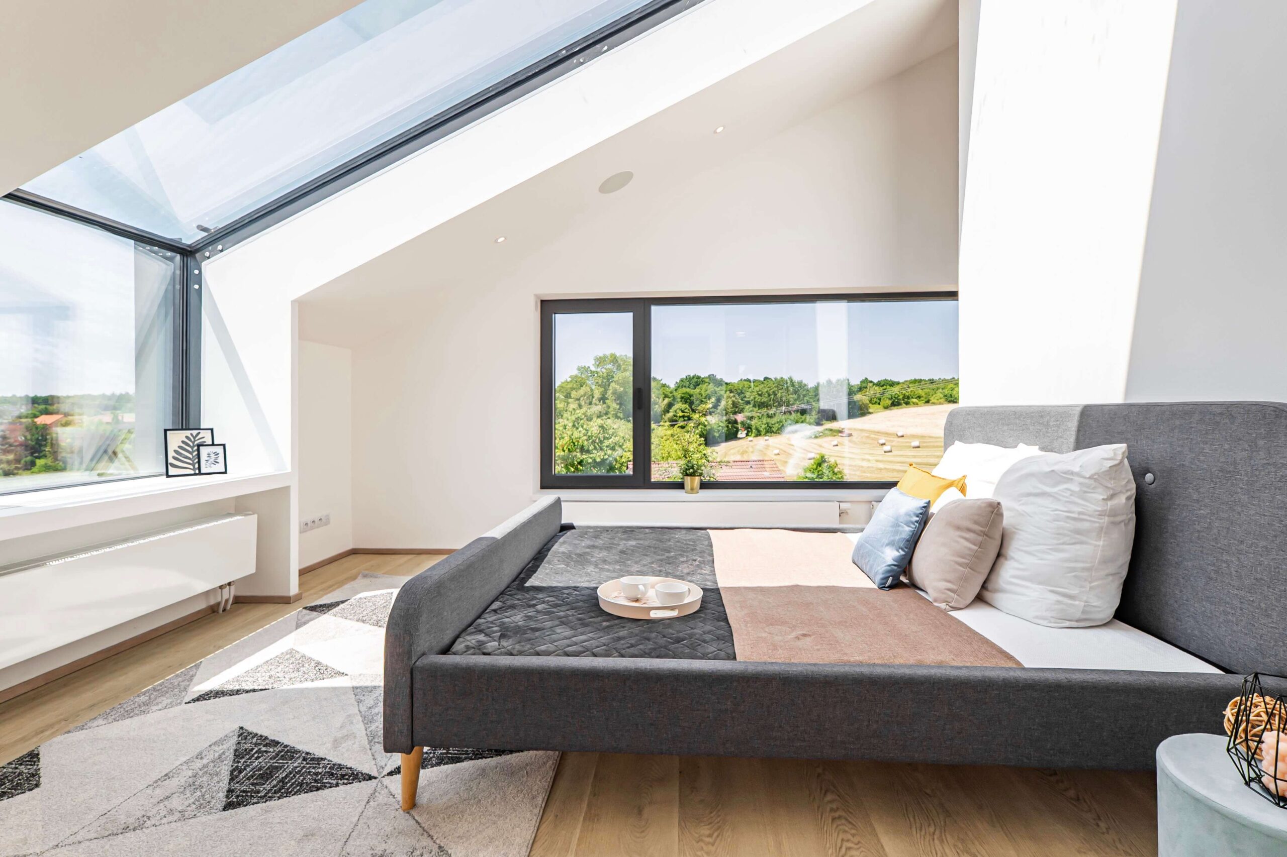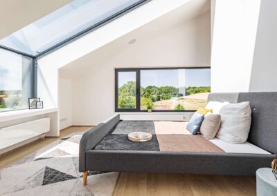 Ateliérové okno se strukturálním spojem: Velkorysé prosklení v ploše střechy, které díky absenci vystupujících rámů působí velmi čistě.