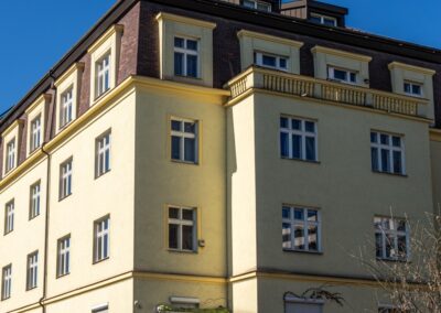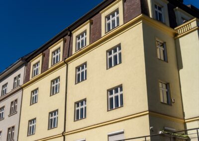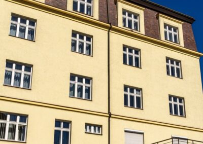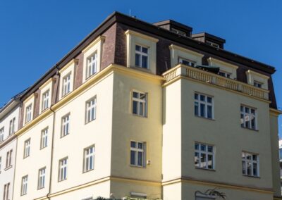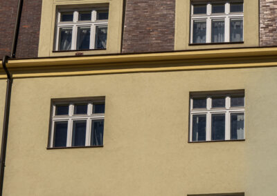 V bytovém domě v Hradešínské ulici na Vinohradech proběhla kompletní výměna původních oken za nová kastlová okna a balkonové sestavy Historic, které respektují původní vzhled domu. Cílem bylo zachovat charakteristický výraz vinohradské činžovní zástavby a zároveň přinést vyšší komfort bydlení z hlediska tepelné i akustické pohody.