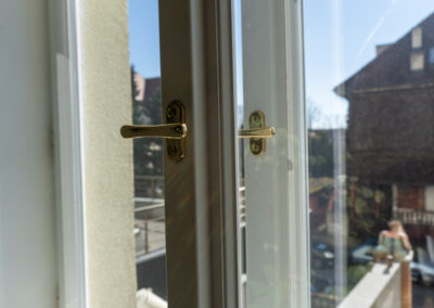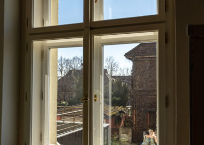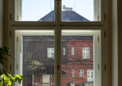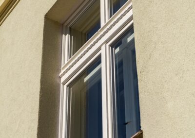 Nová okna a balkonové sestavy Historic navazují na původní členění i detaily rámů, takže fasáda působí autenticky, ale už nabízí moderní parametry. Realizace proběhla za plného provozu domu, s koordinací po jednotlivých bytech tak, aby byl zásah do života obyvatel co nejmenší a každá etapa mohla být rychle dokončena.