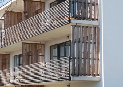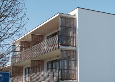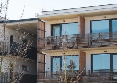 U novostavby bytového domu pro seniory v Plzni jsme realizovali montáž 38 sestav balkonových dveří s fixními poli z plastového profilu Veka 82 MD, 15 protipožárních hliníkových vstupních dveří, 11 protipožárních fixních hliníkových oken a jedné hliníkové fasádní stěny.