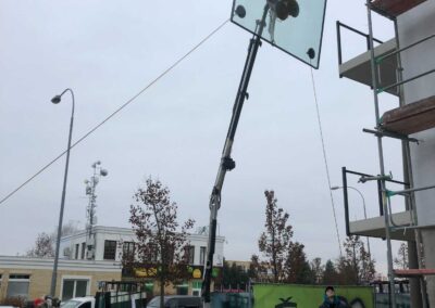 Montáž probíhala včetně instalace parozábran a zasklívací mechanizace, která byla využita například při osazování velkoformátových skel – jak je vidět na fotografii. Dům byl nominován na cenu Stavba roku 2022 Plzeňského kraje.