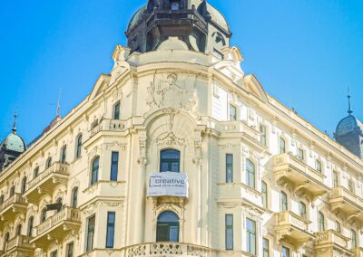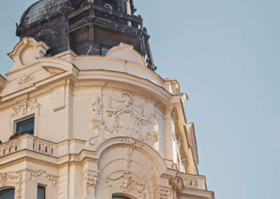 Před realizací jsme vyřídili povolení od památkářů včetně vypracování výkresové dokumentace. Samotná realizace pak trvala necelé tři měsíce a bylo při ní vyměněno 182 ks historických oken a balkonových dveří. Celá zakázka byla přitom provedena na klíč. Zajistili jsme demontáž a likvidaci starých oken, montáž, zednické začištění i zpracování dalších detailů jako mosazné kličky, dřevěné parapety či venkovní přechodové plechy.