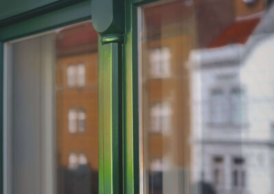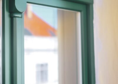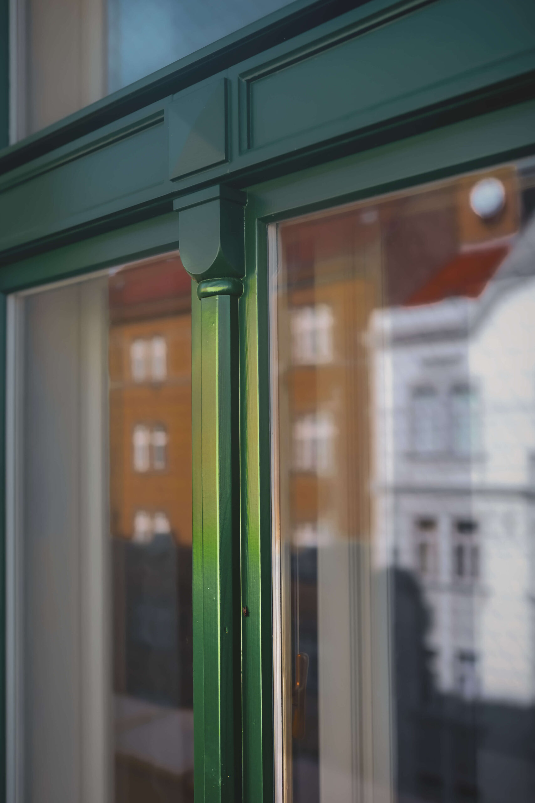 Nová špaletová okna Historic byla vytvořena jako přesné repliky původních historických oken v dvoubarevném provedení (zevnitř bílá, zvenku zelená) včetně všech ozdob a profilace.
