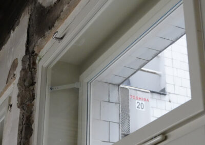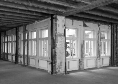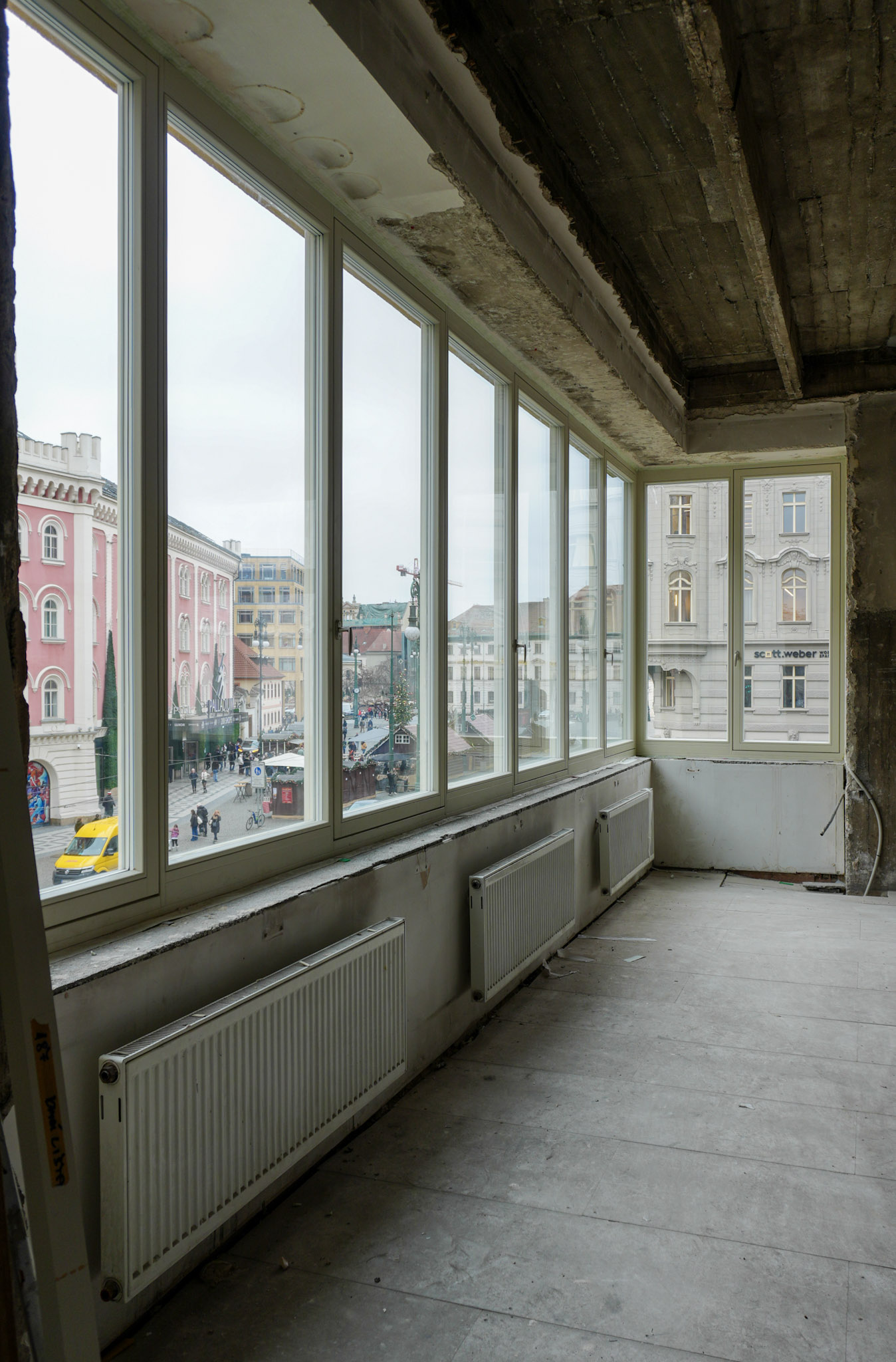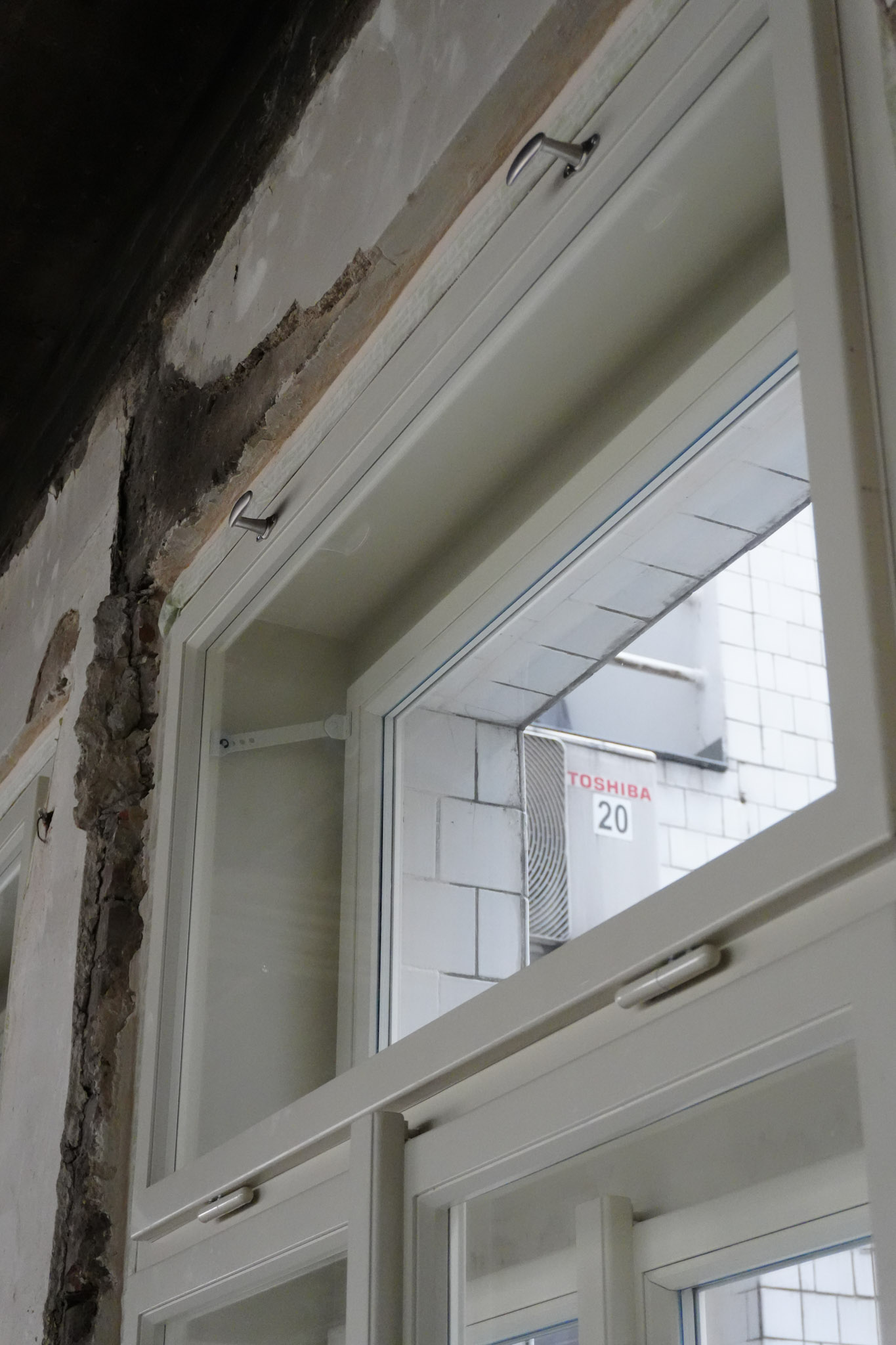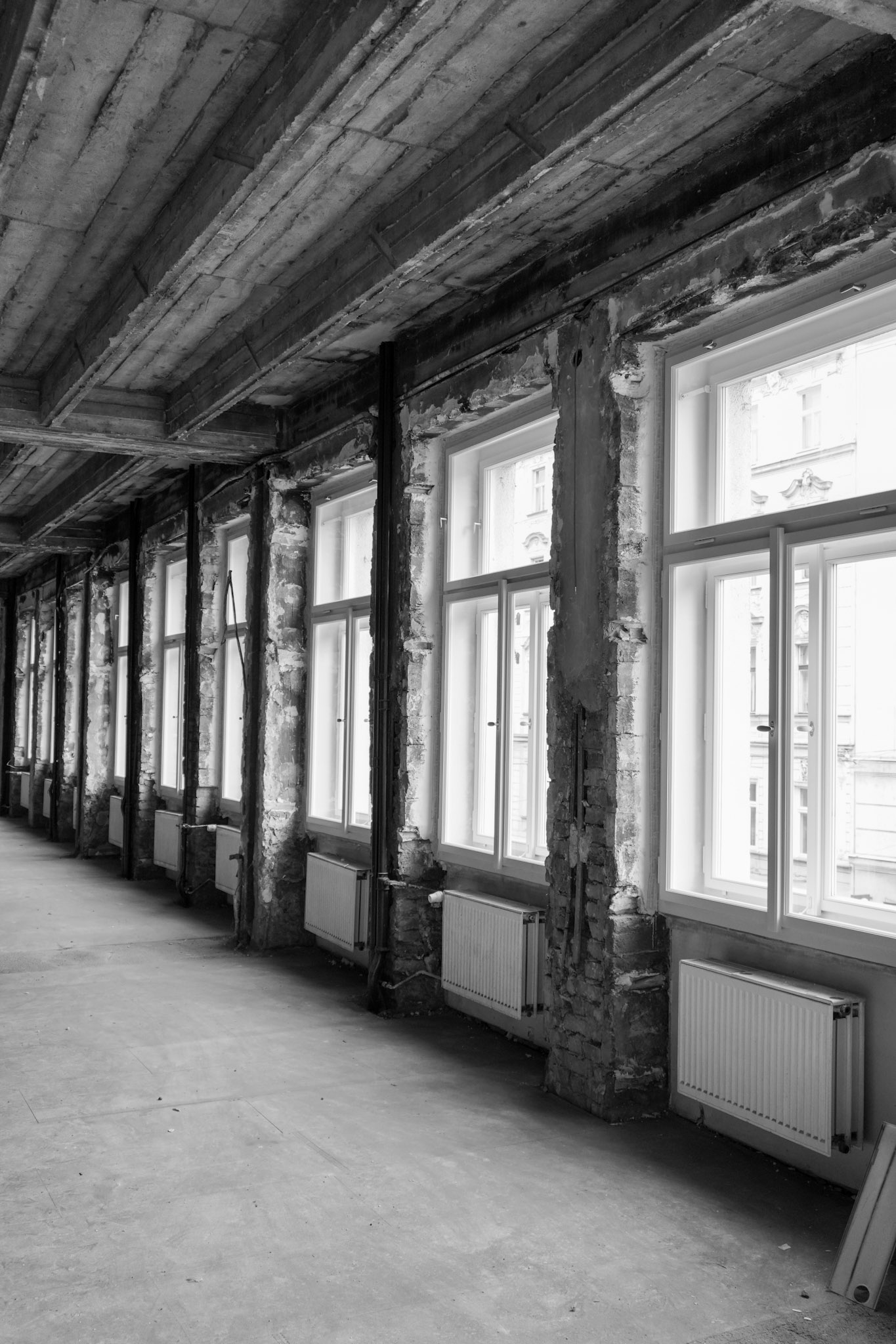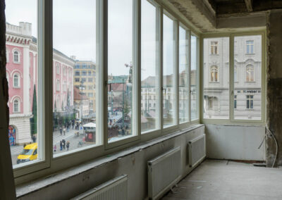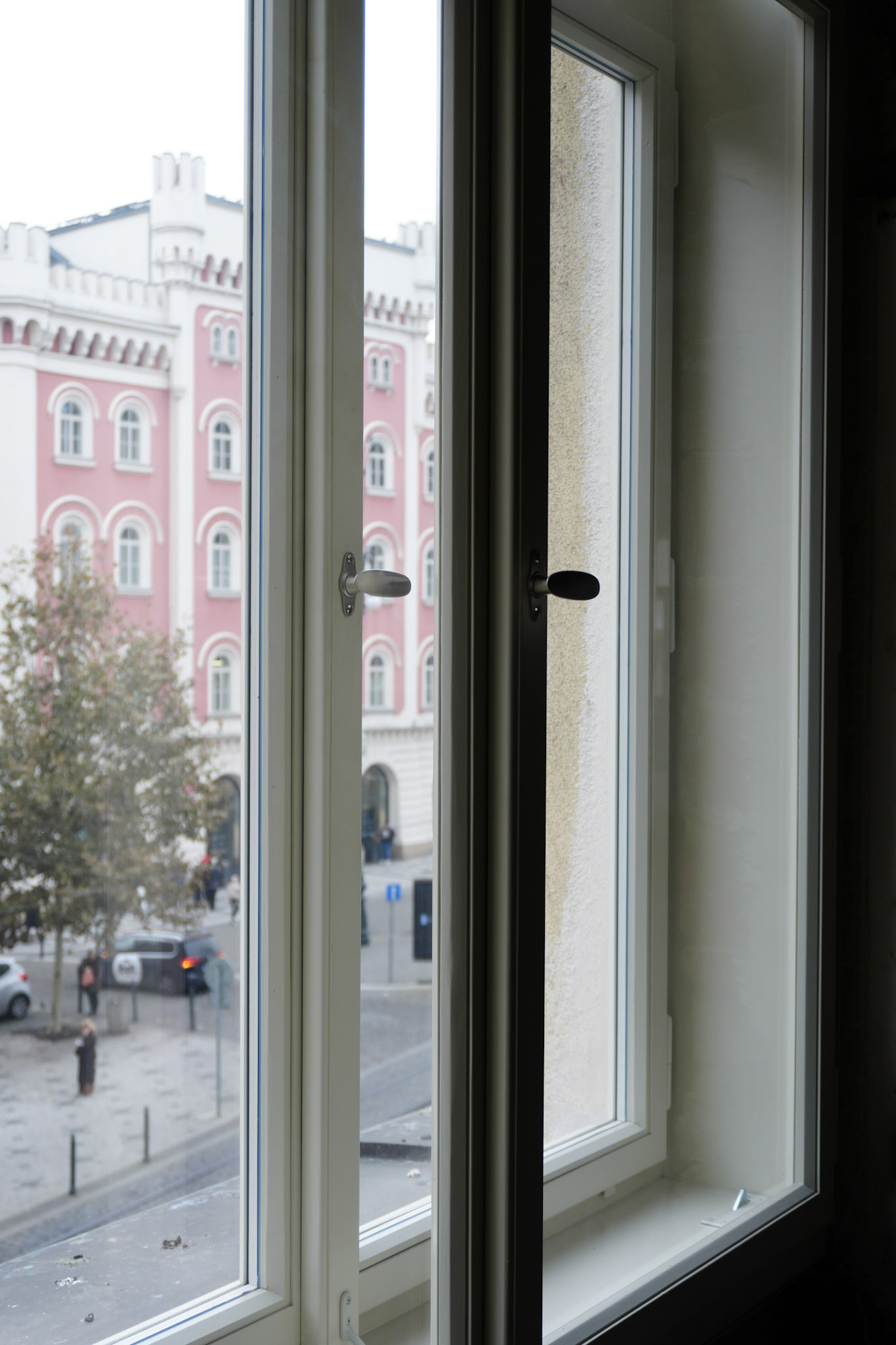 V rámci této realizace proběhla výměna původních oken za repliky historických špaletových oken v našem profilu Historic. Okna jsou osazena izolačním dvojsklem v exteriérové části a jednoduchým zasklením v interiéru s ohledem na charakter objektu a památkové požadavky. Součástí dodávky bylo také jednoduché rohové okno na hlavní fasádě v bezfalcovém provedení. Realizace probíhala v kancelářských prostorách celého jednoho patra budovy na adrese Revoluční 1, nad restaurací Pizza Nuova.